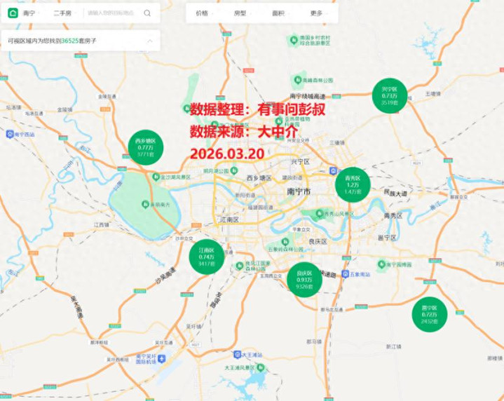 南宁楼市现在待售二手房数量也基本上维持了一个稳定,像是南宁良庆区待售二手房从9351套变成了9326套,变化就不大。